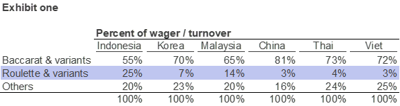 Game preferences from an online Asian casino