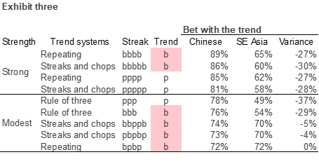 % of players who bet with the trend by nationality; Asian iGaming operator